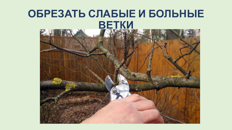 Слайд 18ОБРЕЗАТЬ СЛАБЫЕ И БОЛЬНЫЕ ВЕТКИ