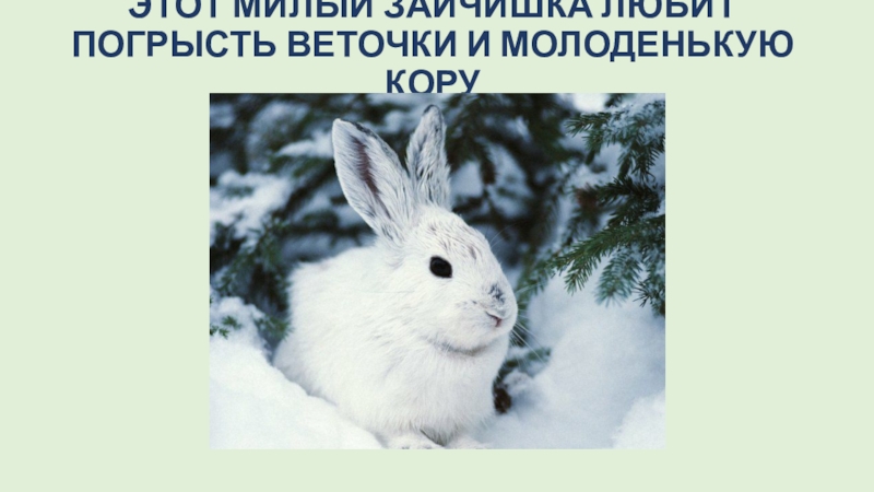 Слайд 11ЭТОТ МИЛЫЙ ЗАЙЧИШКА ЛЮБИТ ПОГРЫСТЬ ВЕТОЧКИ И МОЛОДЕНЬКУЮ КОРУ