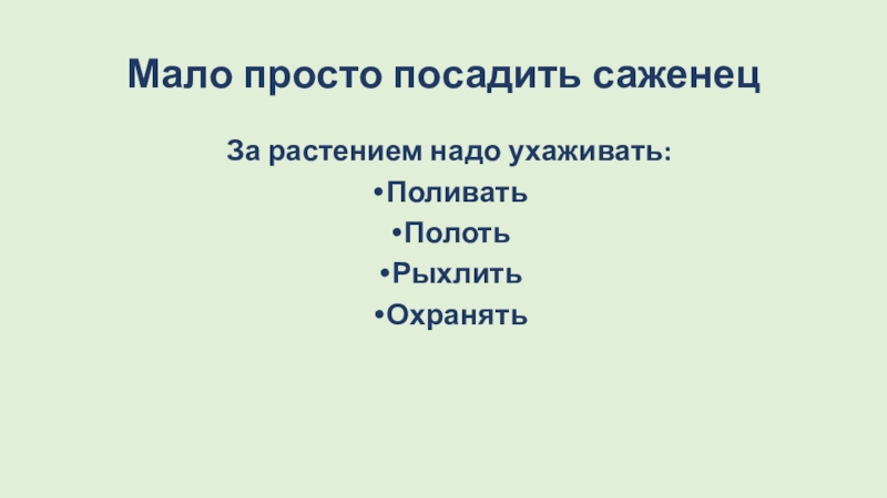 Мало просто посадить саженецЗа растением надо ухаживать:ПоливатьПолотьРыхлитьОхранять