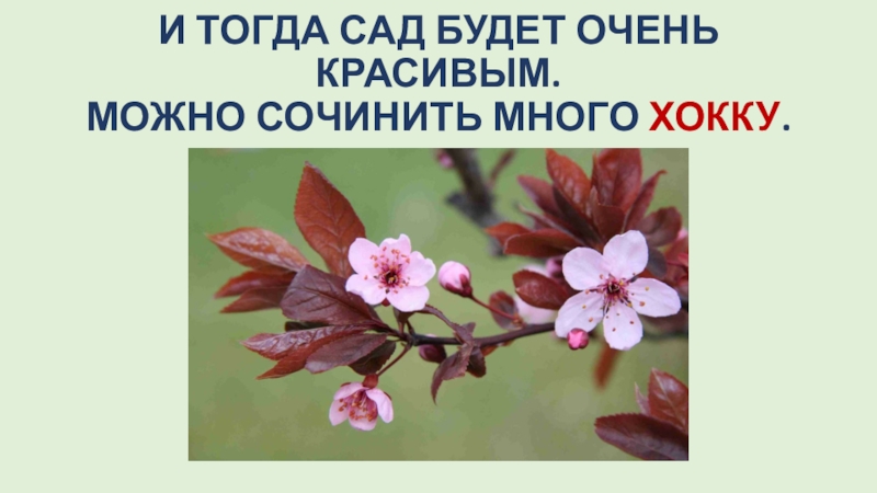 Слайд 19И ТОГДА САД БУДЕТ ОЧЕНЬ КРАСИВЫМ. МОЖНО СОЧИНИТЬ МНОГО ХОККУ.