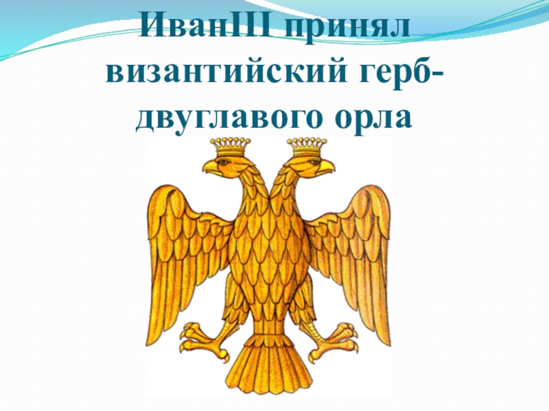 Слайд 14ИванIII принял византийский герб- двуглавого орла
