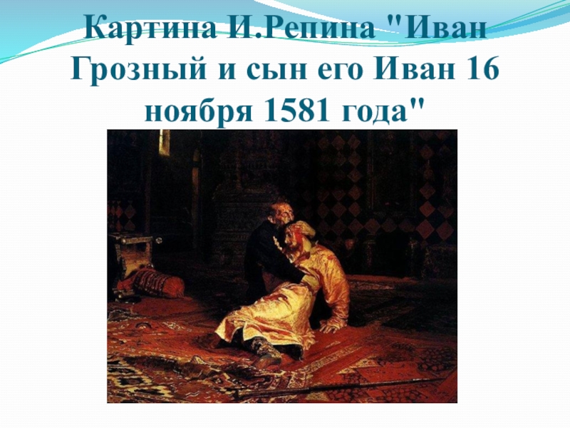 Слайд 19Картина И.Репина "Иван Грозный и сын его Иван 16 ноября 1581