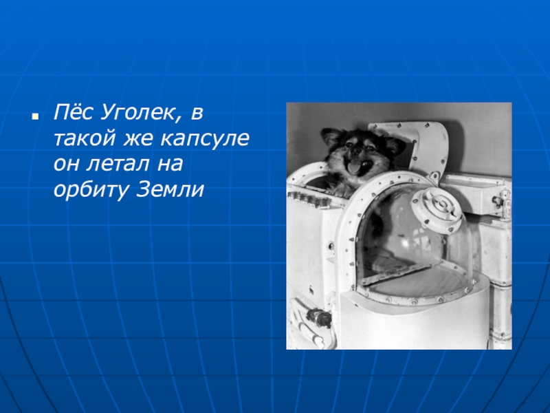 Пёс Уголек, в такой же капсуле он летал на орбиту Земли
