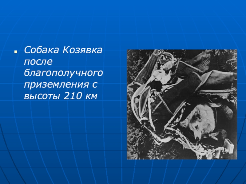 Собака Козявка после благополучного приземления с высоты 210 км