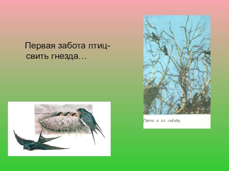 Весной к нам возвращаются перелетные птицы, вьют гнезда и выводят птенцов.