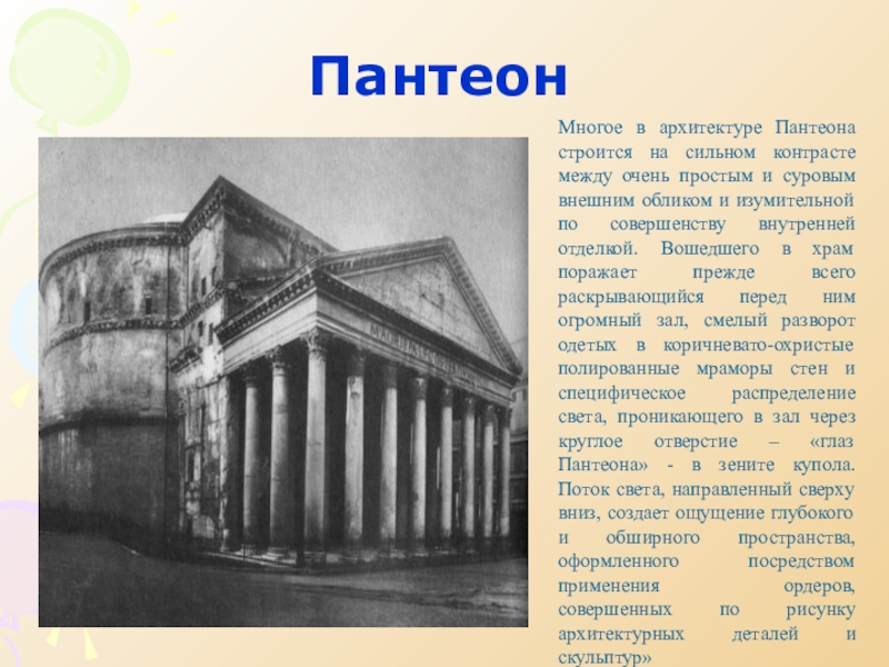 Многое в архитектуре Пантеона строится на сильном контрасте между очень простым
