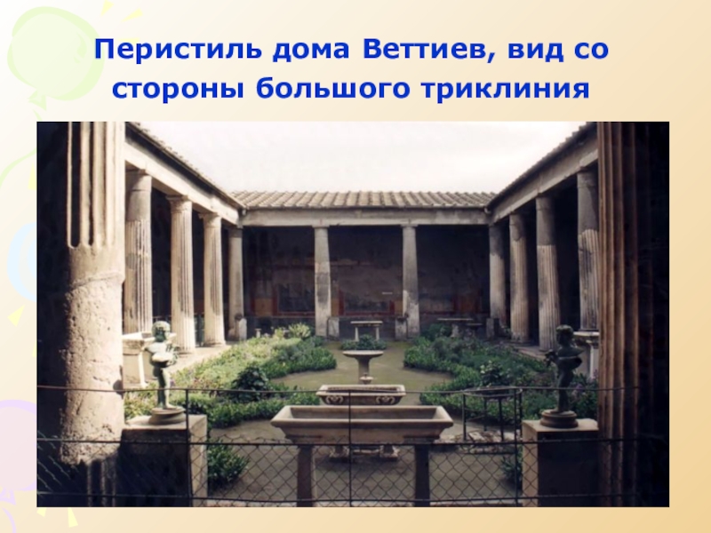 Слайд 25Перистиль дома Веттиев, вид со стороны большого триклиния