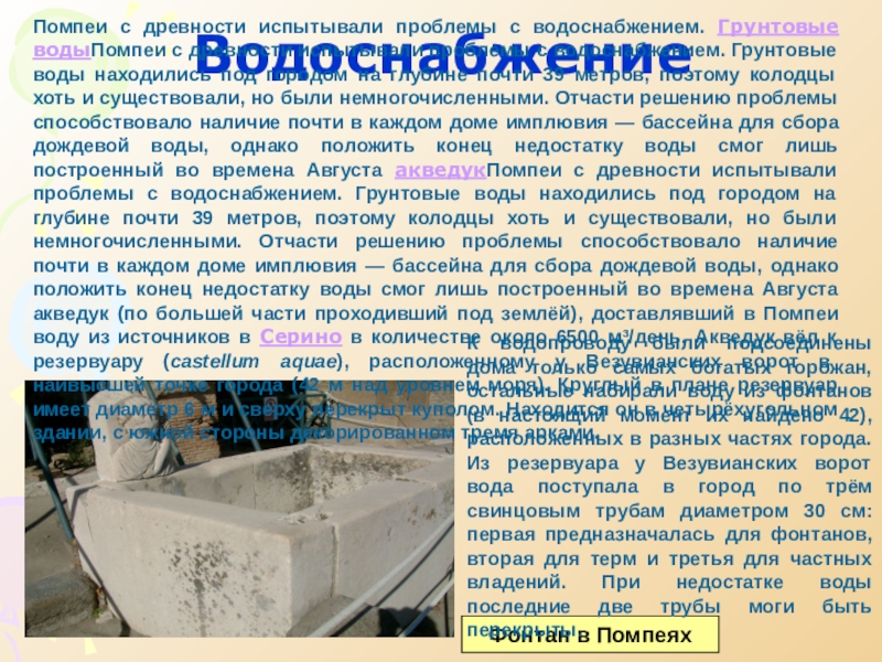 Помпеи с древности испытывали проблемы с водоснабжением. Грунтовые водыПомпеи