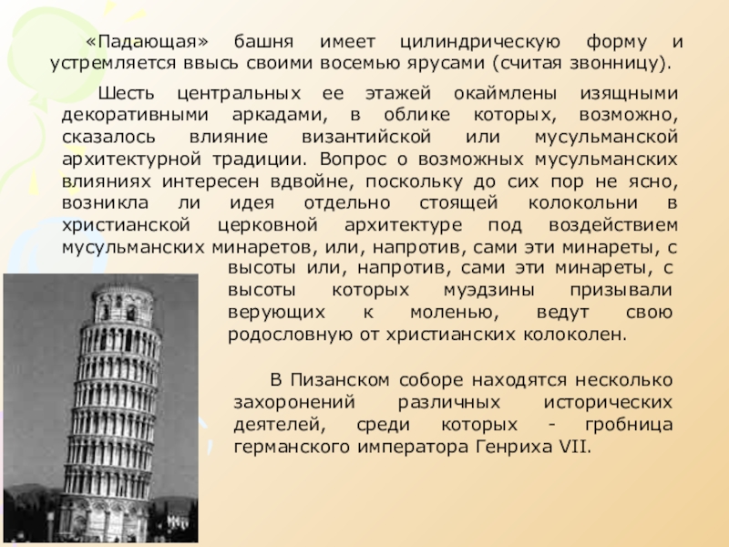 Слайд 47Как из-за наклона, так и из-за оригинальной архитектуры, с 1173 года
