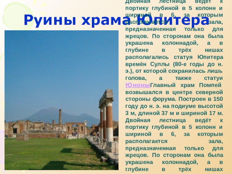 Главный храм Помпей возвышался в центре северной стороны форума.