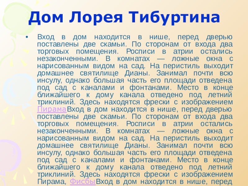 Небольшой, однако богато украшенный дом, принадлежавший торговцам вольноотпущенникамНебольшой, однако богато
