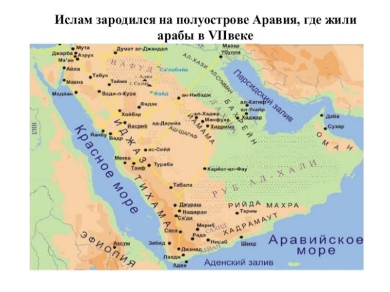 Слайд 22Религия, которую проповедовал Мухаммед, получила название ислам. Приверженцы ислама стали называться