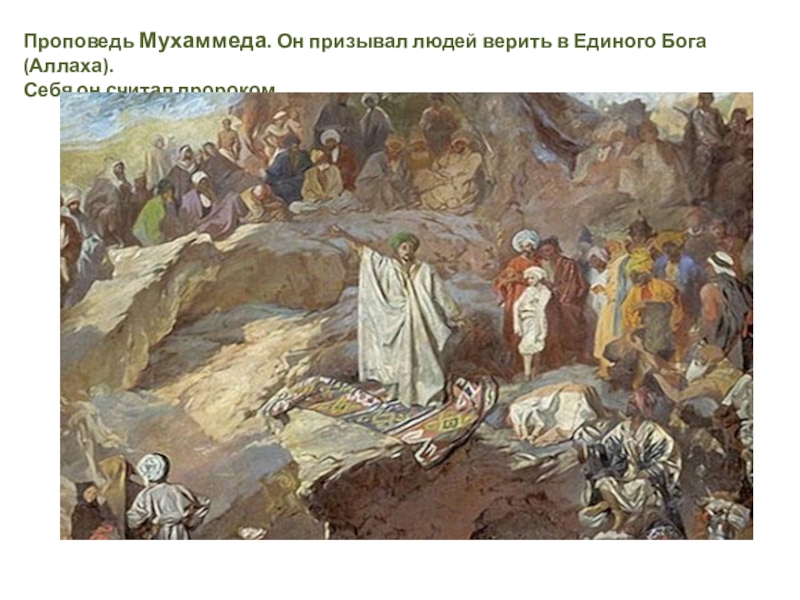 Слайд 20Проповедь Мухаммеда. Он призывал людей верить в Единого Бога(Аллаха).