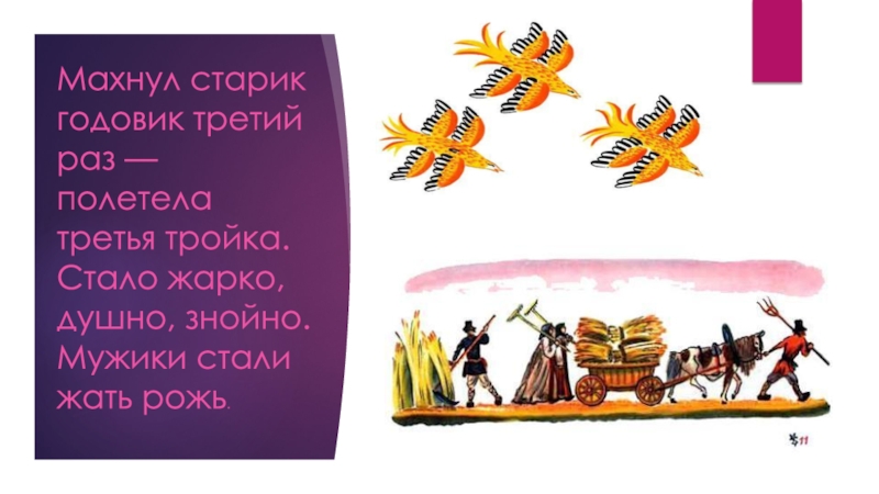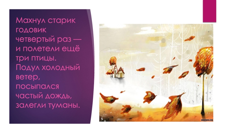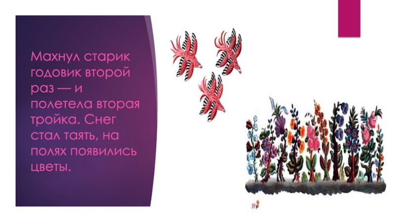 Слайд 6Махнул старик годовик четвертый раз — и полетели ещё три птицы.
