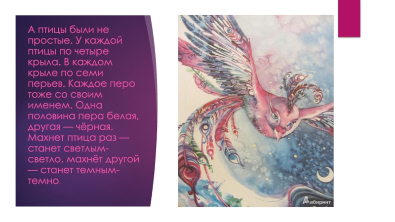 Слайд 7А птицы были не простые. У каждой птицы по четыре крыла.