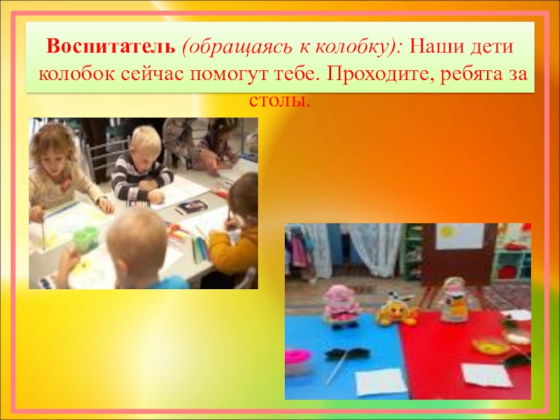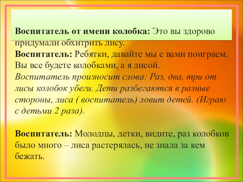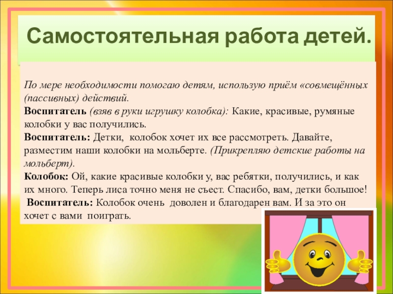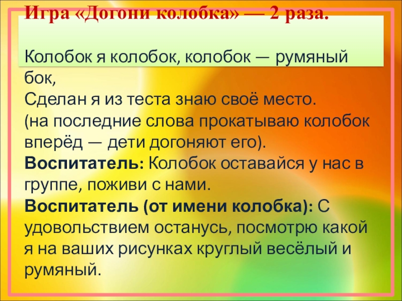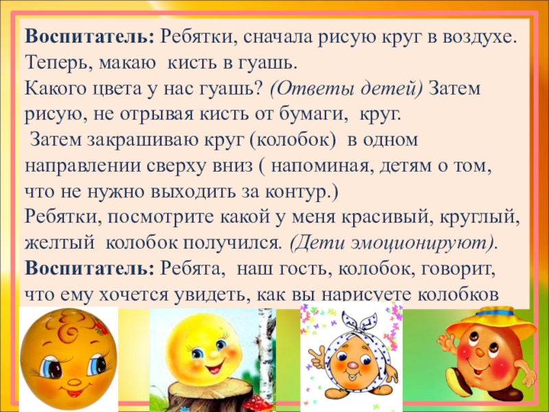Воспитатель от имени колобка: Очень мне понравилось, как вы поёте.