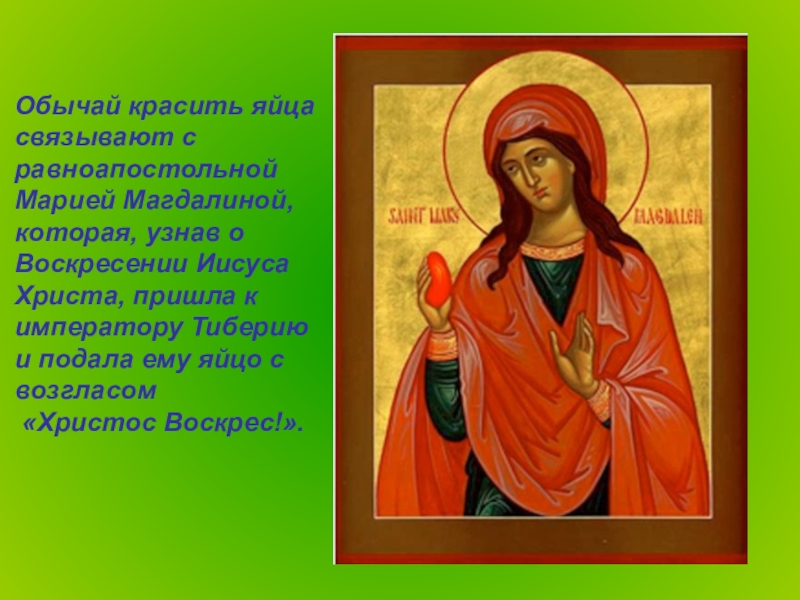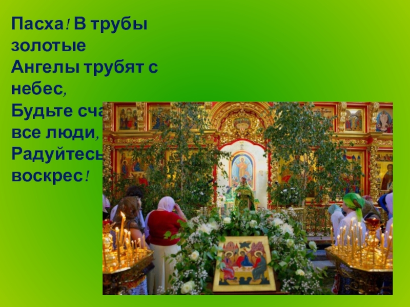 Кулич – церковно – обрядовый хлеб круглой формы. Пекли его из сдобного, сладкого теста, наверху украшали крестом, белковой глазурью, цветным пшеном.