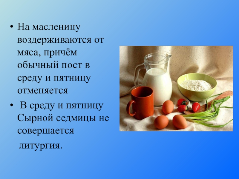На масленицу воздерживаются от мяса, причём обычный пост в среду и