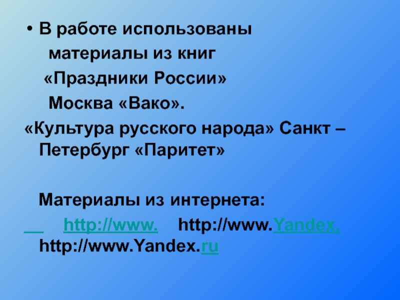 «Культура русского народа» Санкт –Петербург «Паритет»
