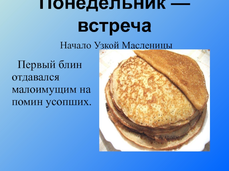 Первый блин отдавался малоимущим на помин