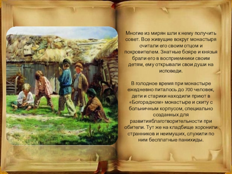Слайд 13Многие из мирян шли к нему получить совет. Все живущие вокруг
