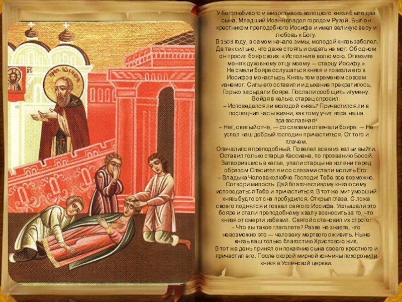 Слайд 15У боголюбивого и милостивого волоцкого князя было два сына. Младший Иоанн