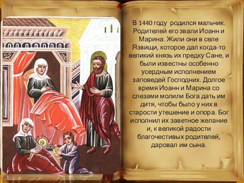 Слайд 2В 1440 году родился мальчик. Родителей его звали Иоанн и Марина.
