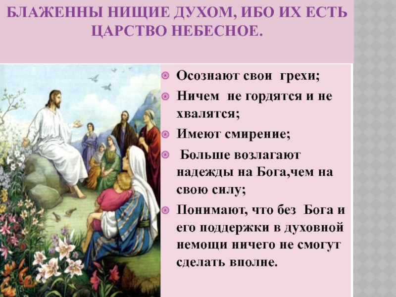 Христос сказал : «Царство Божие – внутри вас». А чтобы обрести его в себе, нужно исполнять Заповеди Блаженства.