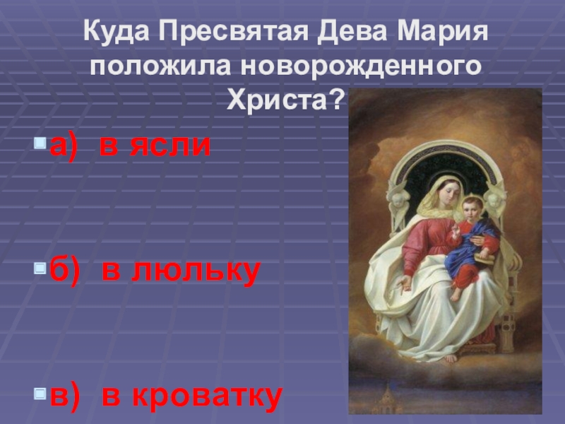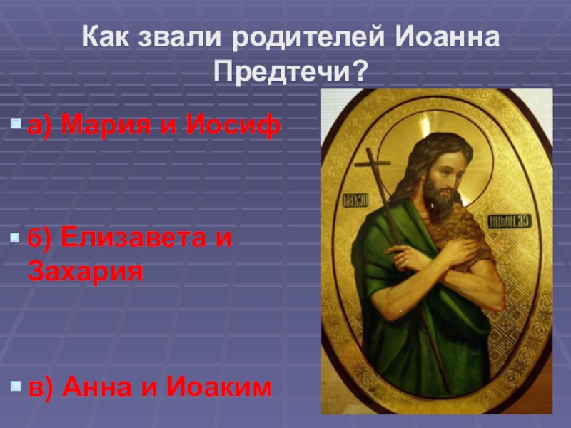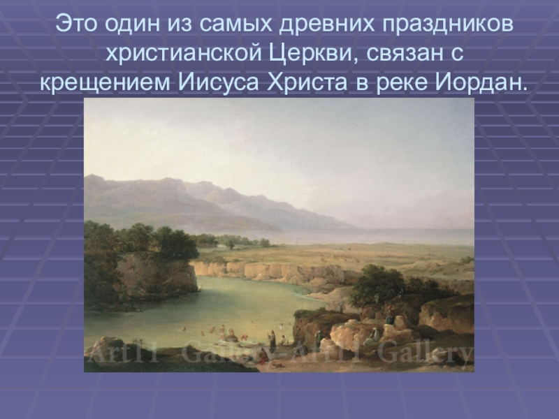 Когда Иоанн крестил в воде Иисуса, открылось небо, и сошел на Иисуса Христа Святой Дух в виде голубя, и послышался голос с небес.