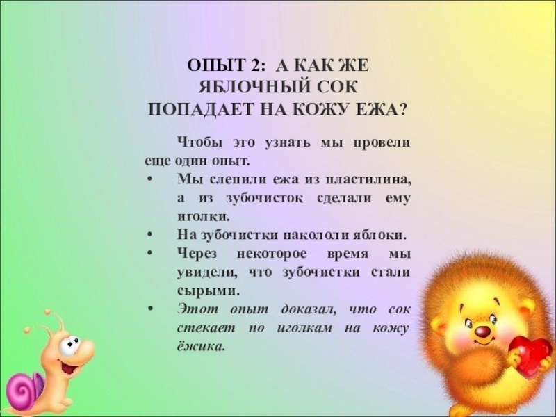 Этот опыт доказал, что сок стекает по иголкам на кожу ёжика.
