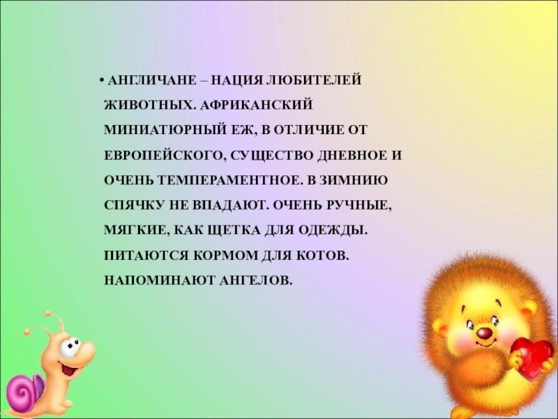 Слайд 16 АНГЛИЧАНЕ – НАЦИЯ ЛЮБИТЕЛЕЙ ЖИВОТНЫХ. АФРИКАНСКИЙ МИНИАТЮРНЫЙ ЕЖ, В ОТЛИЧИЕ