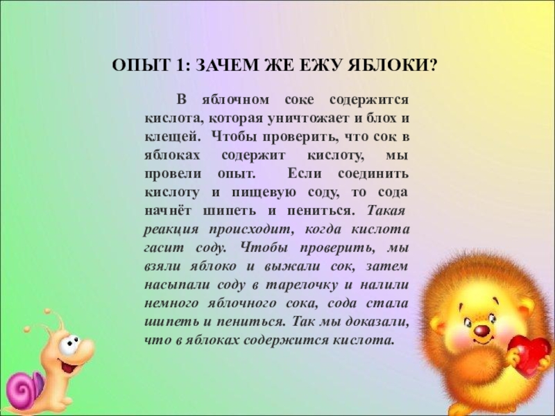 ОПЫТ 1: ЗАЧЕМ ЖЕ ЕЖУ ЯБЛОКИ?