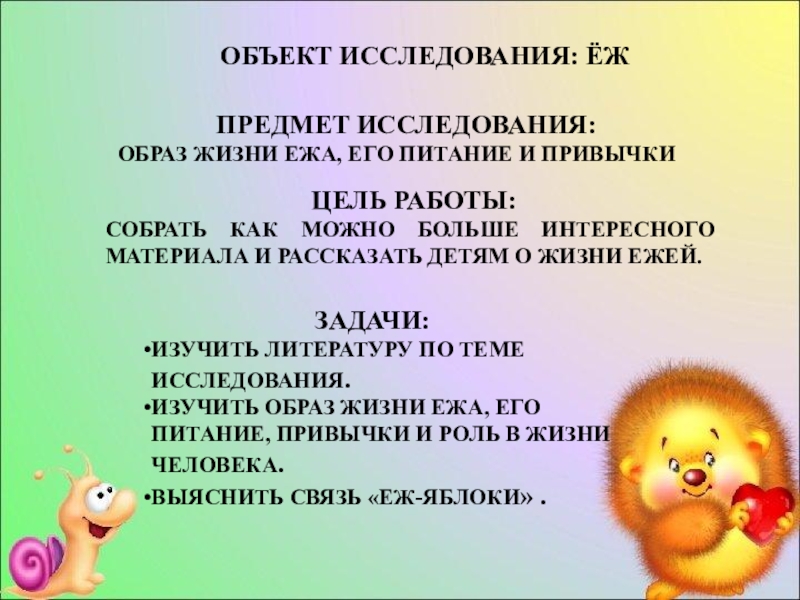 Слайд 3ОБЪЕКТ ИССЛЕДОВАНИЯ: ЁЖ