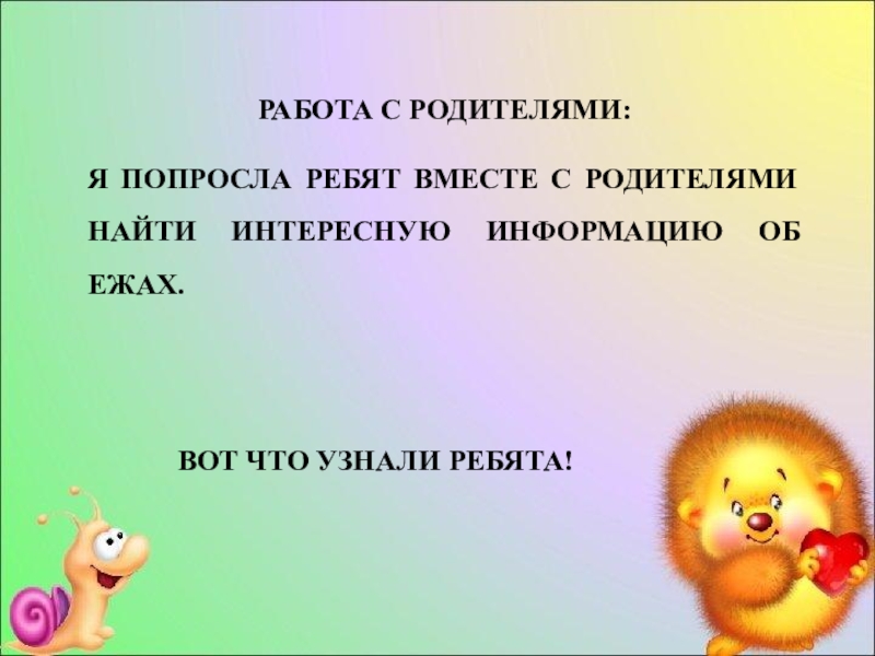 СОБРАТЬ КАК МОЖНО БОЛЬШЕ ИНТЕРЕСНОГО МАТЕРИАЛА И РАССКАЗАТЬ ДЕТЯМ О ЖИЗНИ ЕЖЕЙ.