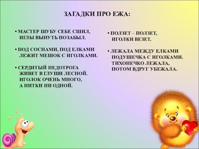 Слайд 18ЗАГАДКИ ПРО ЕЖА: