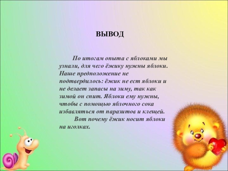 По итогам опыта с яблоками мы узнали, для чего ёжику нужны
