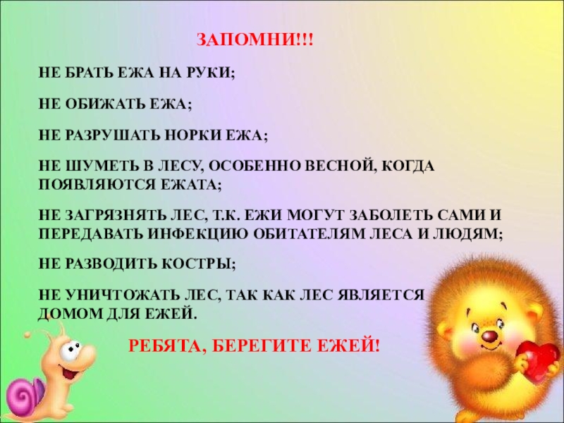 НЕ ОБИЖАТЬ ЕЖА;