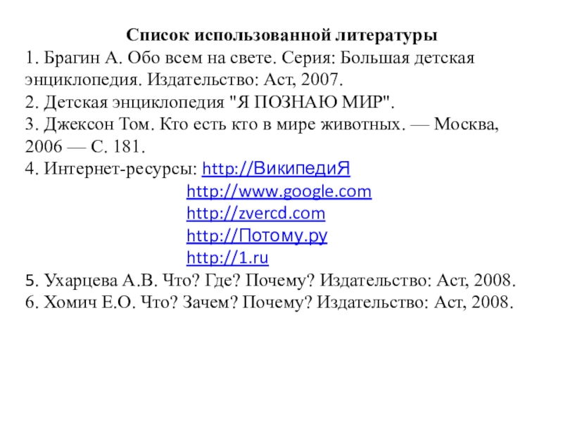 3. Джексон Том. Кто есть кто в мире животных. — Москва, 2006 — С. 181.