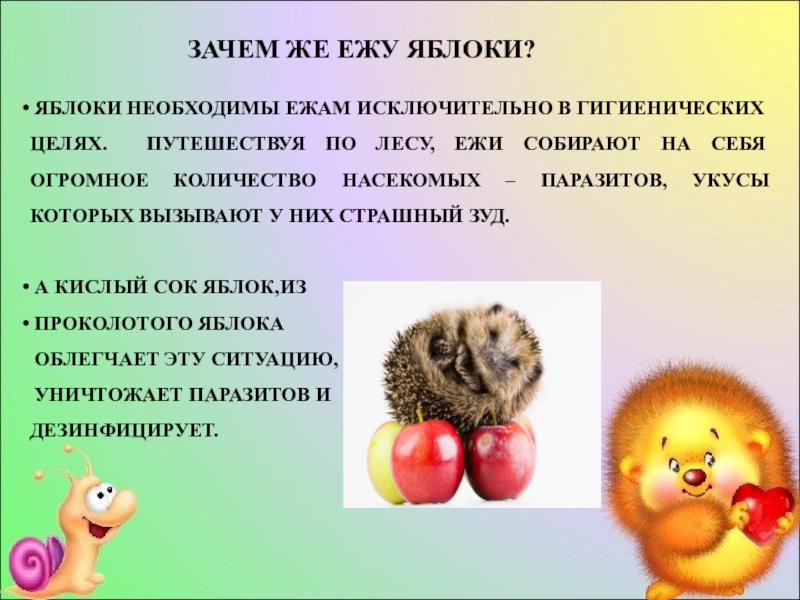 Слайд 25ЗАЧЕМ ЖЕ ЕЖУ ЯБЛОКИ?
