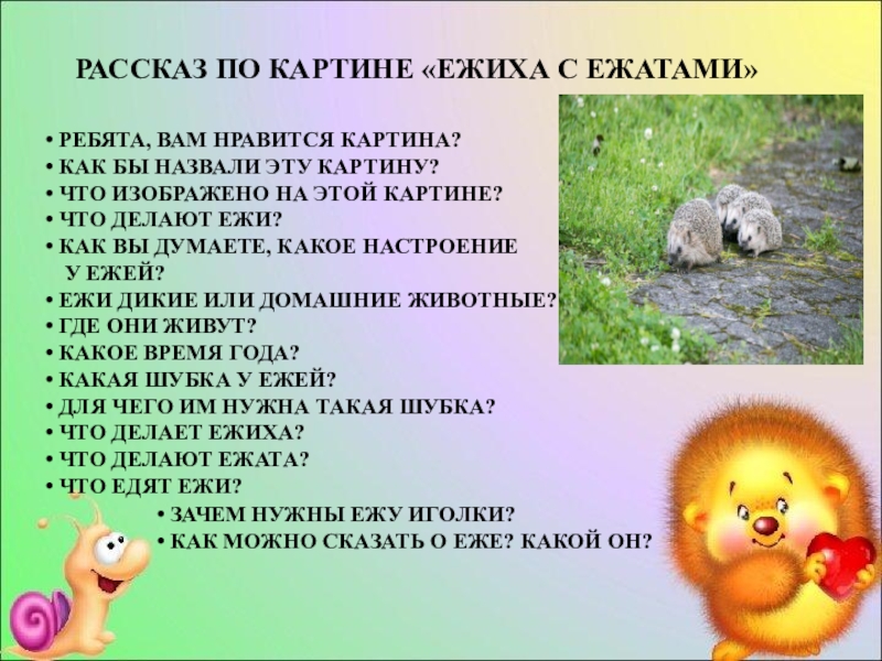 Слайд 22РАССКАЗ ПО КАРТИНЕ «ЕЖИХА С ЕЖАТАМИ»