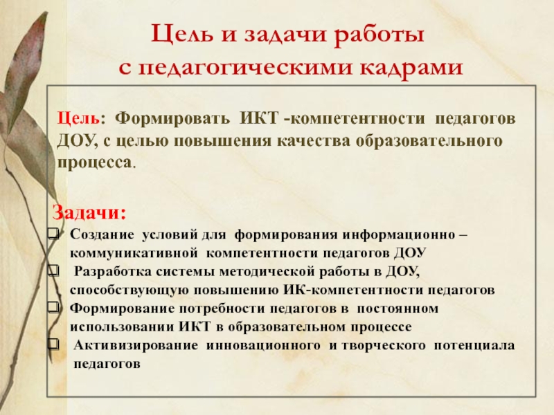 Разработка системы методической работы в ДОУ, способствующую повышению ИК-компетентности педагогов