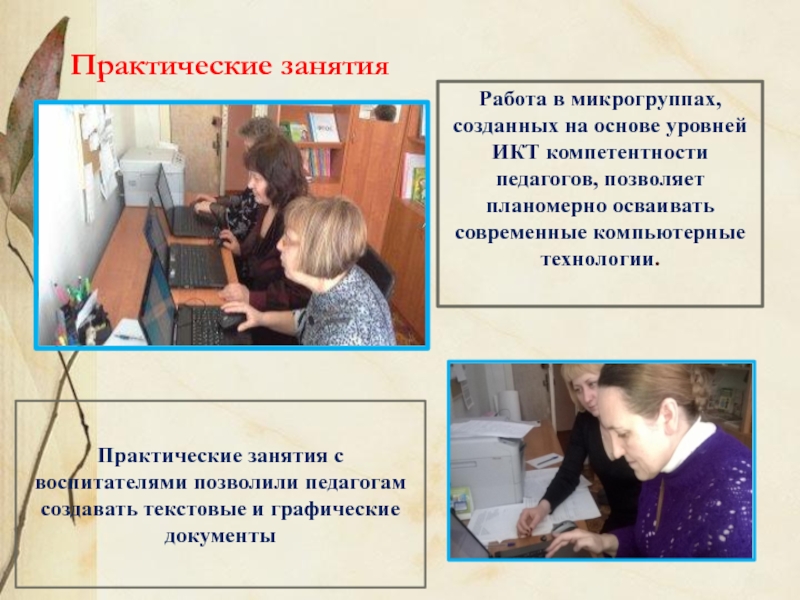 Практические занятия с воспитателями позволили педагогам создавать текстовые и графические документы
