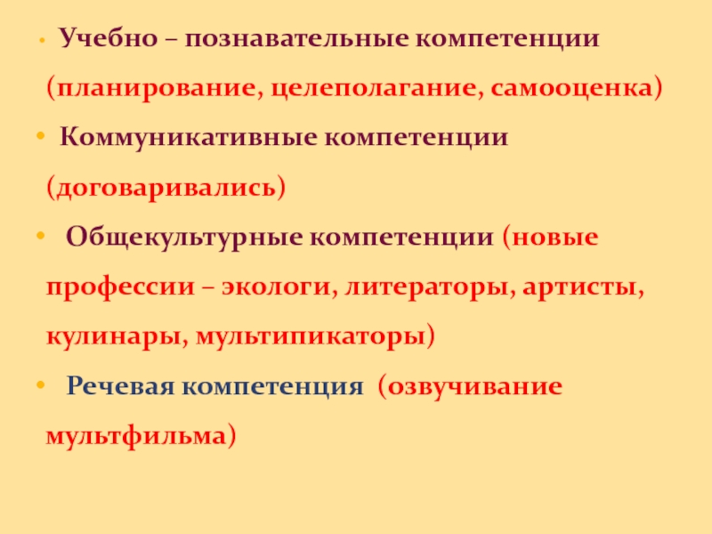 Общекультурные компетенции (новые профессии – экологи, литераторы, артисты, кулинары, мультипикаторы)