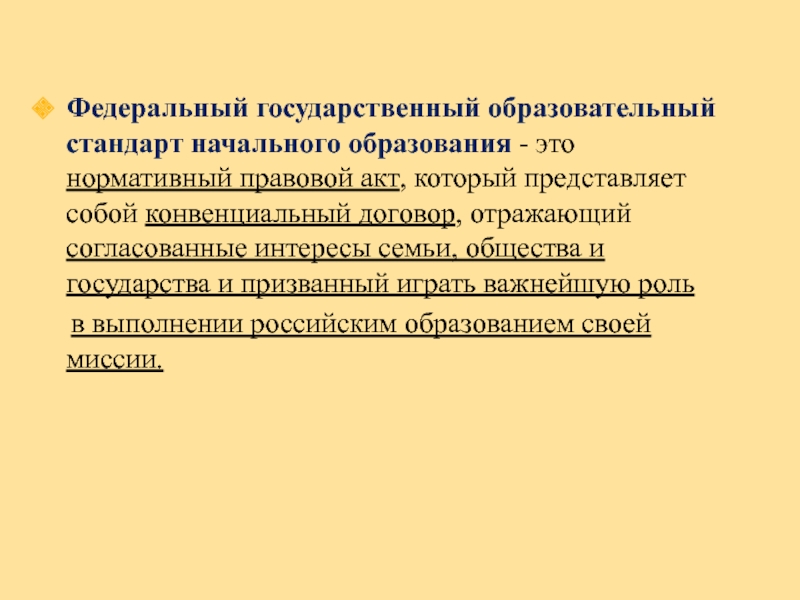 Слайд 3Федеральный государственный образовательный стандарт начального образования - это нормативный правовой акт,