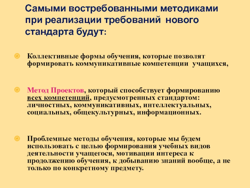Слайд 6Самыми востребованными методиками при реализации требований нового стандарта будут: