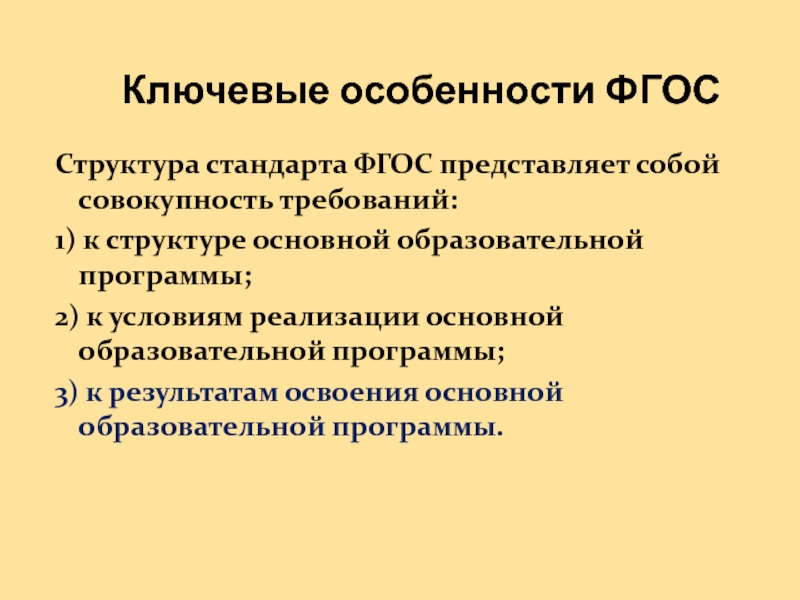 Структура стандарта ФГОС представляет собой совокупность требований: