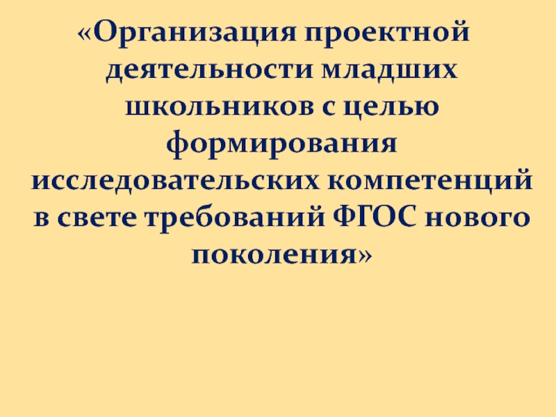 Слайд 2«Организация проектной деятельности младших школьников с целью формирования исследовательских компетенций в
