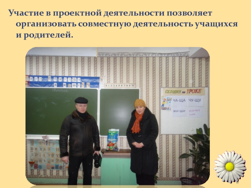 Слайд 8Участие в проектной деятельности позволяет организовать совместную деятельность учащихся и родителей.