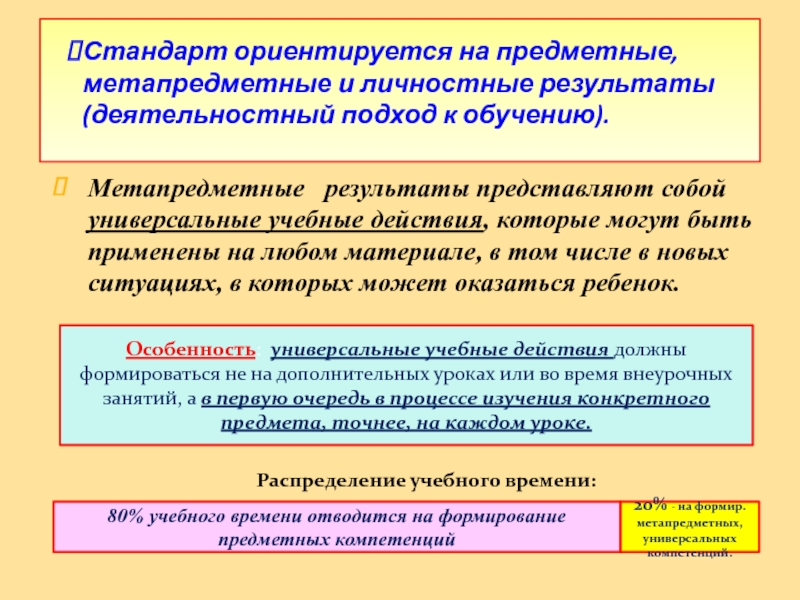20% - на формир. метапредметных, универсальных компетенций.
