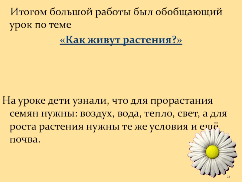 Слайд 21 Итогом большой работы был обобщающий урок по теме